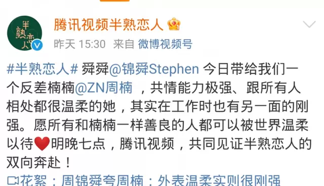 最近有消息传出,《半熟恋人》中的周楠和周锦舜在节目结束后,好像有恋爱的苗头。其实在节目中,我看到两人的互动还挺甜的,心想着他们之后能有所发展呢,但也没看到两人宣传。