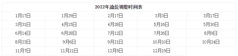 1月有2次油价调整,具体时间:1月17日24、1月29日24时。