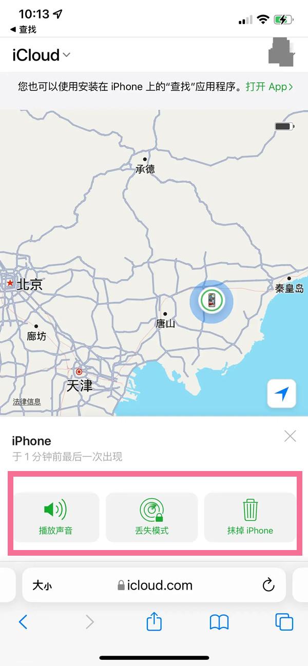 2、点击丢失的苹果手机名称即可进行播放声音、抹除数据等功能操作。