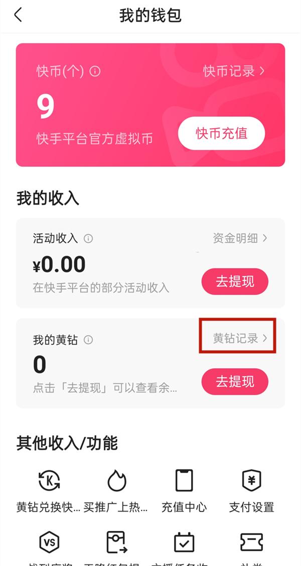 快手主播个人所得税无需自行缴纳,黄钻提现时会自动扣取税费,查看黄钻记录的具体操作步骤如下
