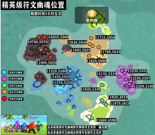 1、精英级符文幽魂的地点如上图所示,小伙伴们直接按照小编给出的具体坐标地点即可找到,刷新时间为3小时左右,