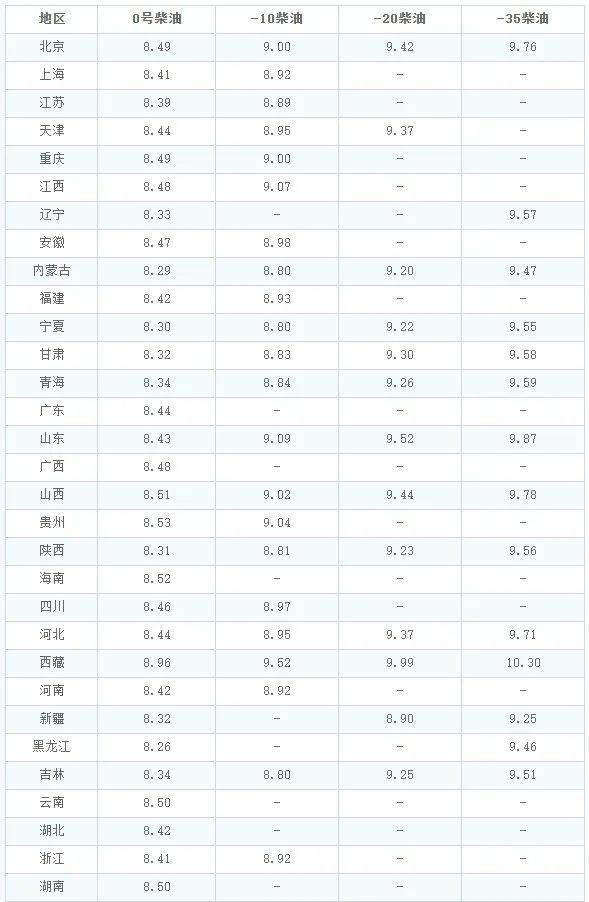 4月6日全国各省市柴油价格表: