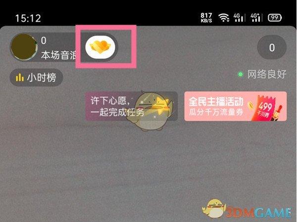 1、进入抖音直播界面,点击粉丝勋章图标。