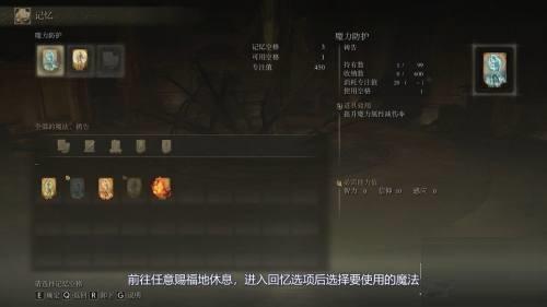2、前往任意赐福地休息,进入回忆选项后选择要使用的魔法。