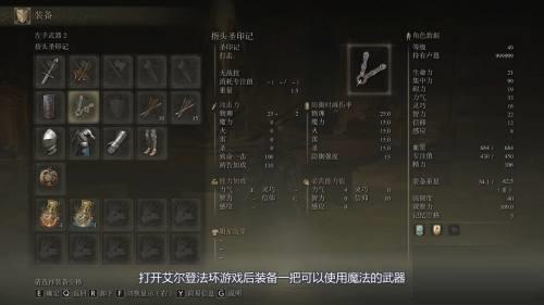 1、打开艾尔登法环手游后装备一把可以使用魔法的武器。