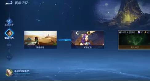 首先桑启的故事书中的故事寻找进度,需要达成【赛年记忆】中的【萤火不灭】剧情分支后,才能获取,我们先点击赛年记忆。