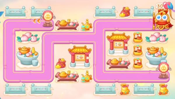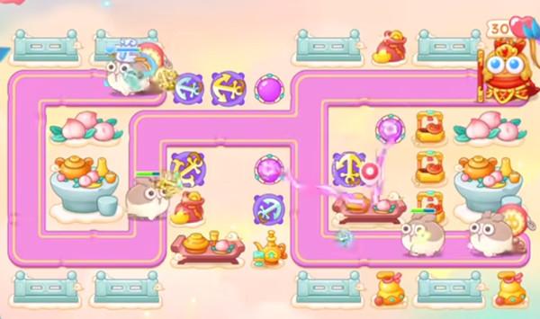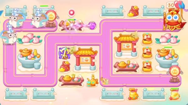 8.打完桃子之后继续放置更多的防御塔,分区域可以放置少量的泡泡塔提供减速的效果。