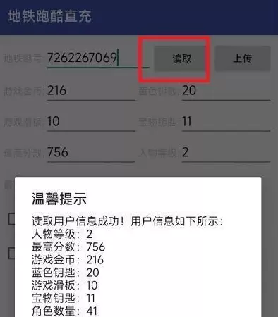 4、打开【地铁跑酷直充器】输入数值进行自动搜索