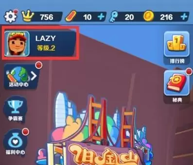 1、第一步就是需要打开地铁跑酷,然后点击左上角的【头像】。