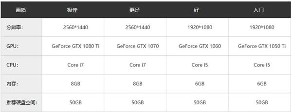 显卡: NVIDIA GeForce GTX 1050 / AMD Radeon RX 560