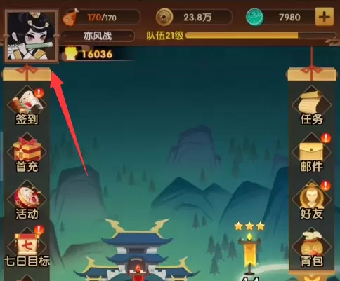 1、进入幻之封神游戏客户端,然后我们需要完成主线关卡3-21,之后点击左上方的个人头像。