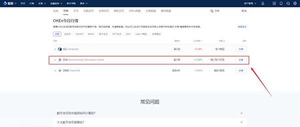 DIA币怎么买?虚拟货币购买推荐:点击进入,第一步:登陆欧易官网(https: www ouyi run ),进入行情页面第二步:搜索DIA第三步:点击交易,