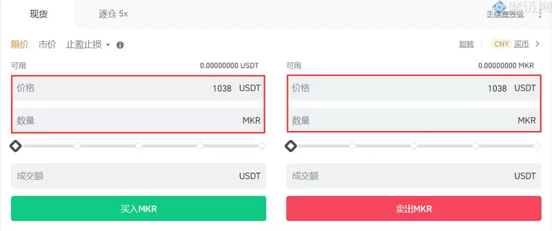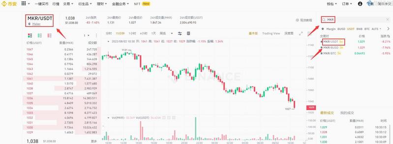 5、在交易页面右侧搜索框搜索币种简称MKR,选择MKR/USDT交易对