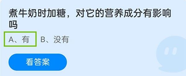 支付宝蚂蚁庄园12月30日今日的题目煮牛奶时加糖,对它的营养成分有影响吗?答对了就可以领取180g小鸡饲料,下面菜鸟小编就为大家带来了今天