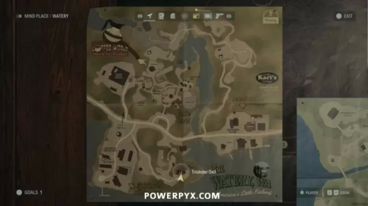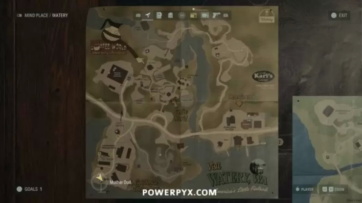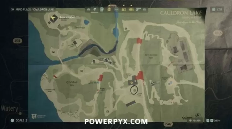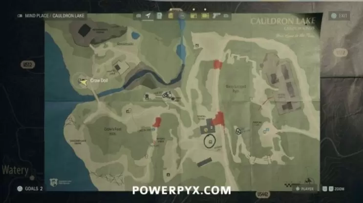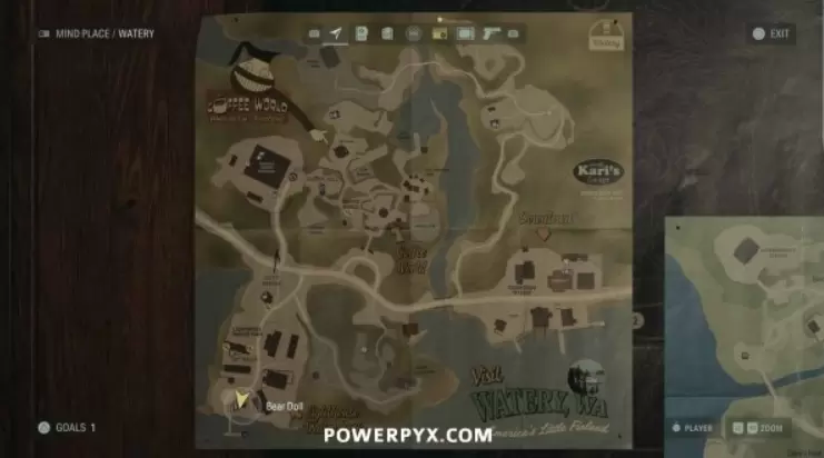消除洪水后,穿过鸦爪岭,过桥往北走可以在左侧看到一个营地,玩偶就在面对湖泊时左手边的野餐桌上,旁边的桌子上还有个汉堡(地图上会显示营地图标,私人小屋西边)。