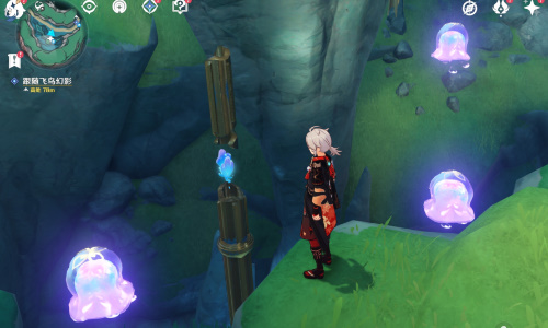 10、在碰飞鸟时,利用底下的粉红色弹跳水母进行跳跃。