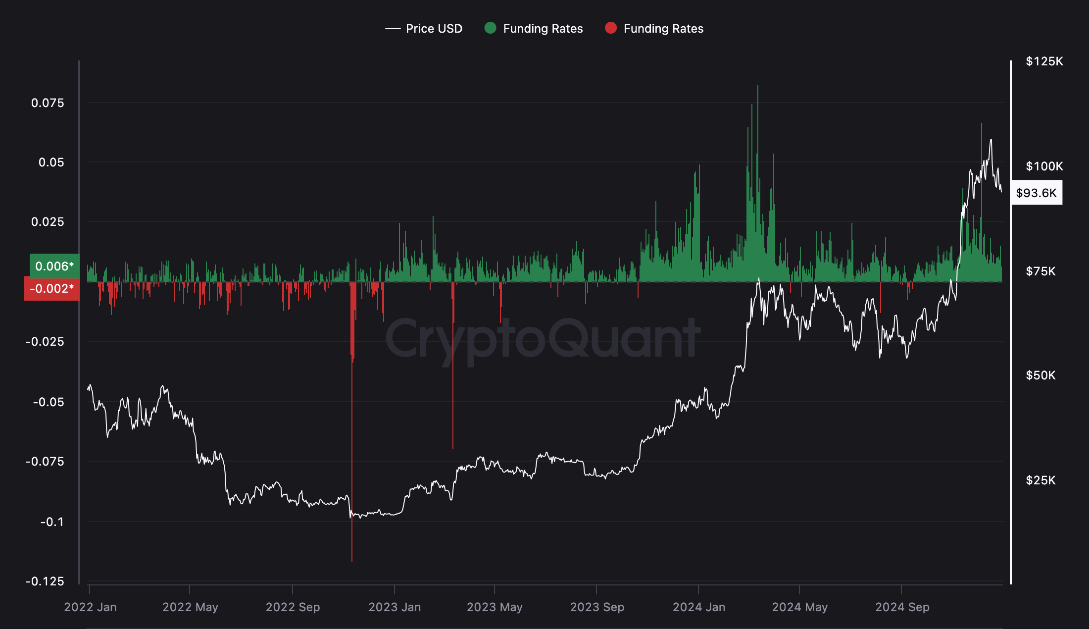 CryptoQuant:比特币永续合约费率走势