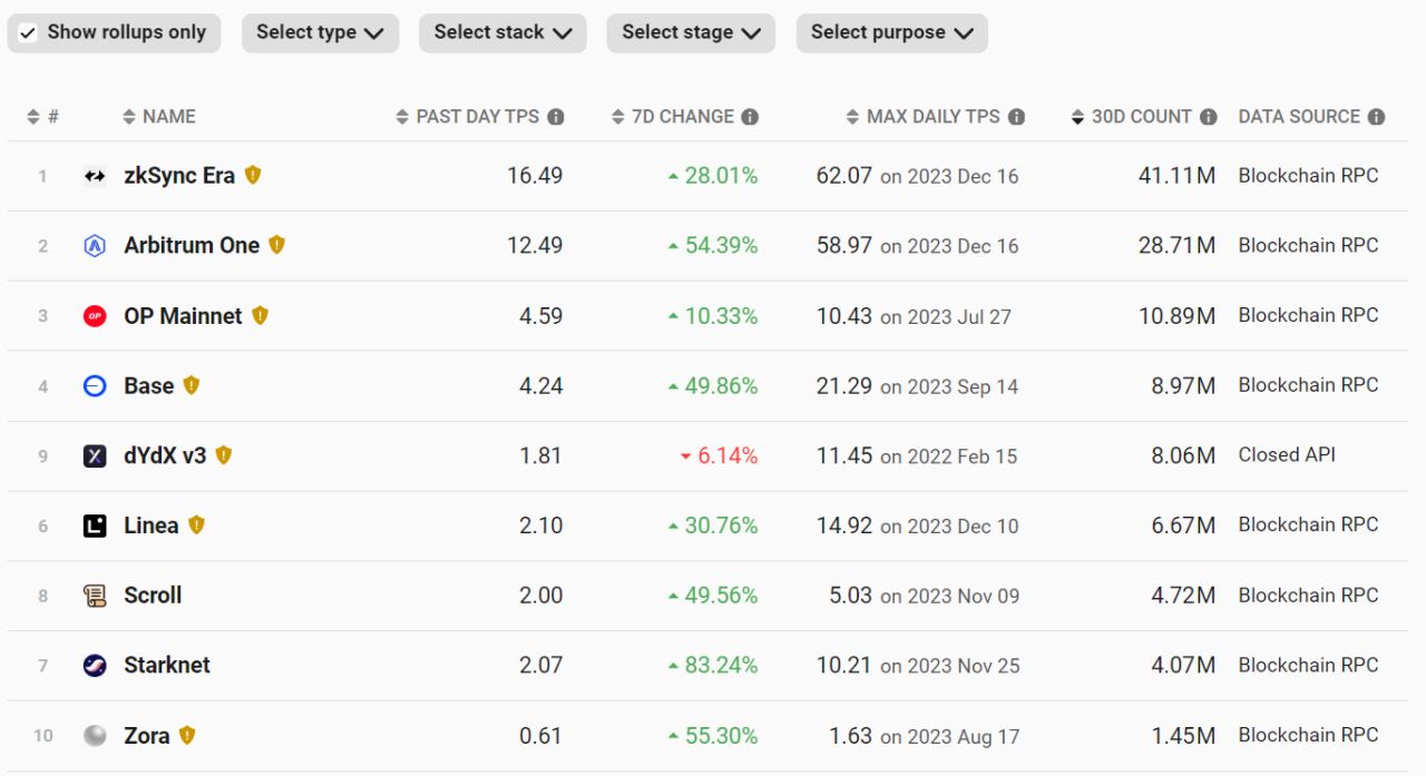 Arbitrum 作为以太坊 L2 的龙头,拥有最丰富的协议种类。Arbitrum 之所以能很大程度受益于此次升级,主要有以下原因: