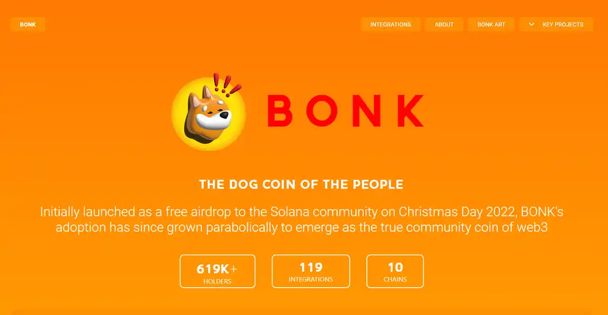 Bonk是又一个以Shiba Inu为主题的Solana模因币,于2023年2月在Solana区块链上推出。