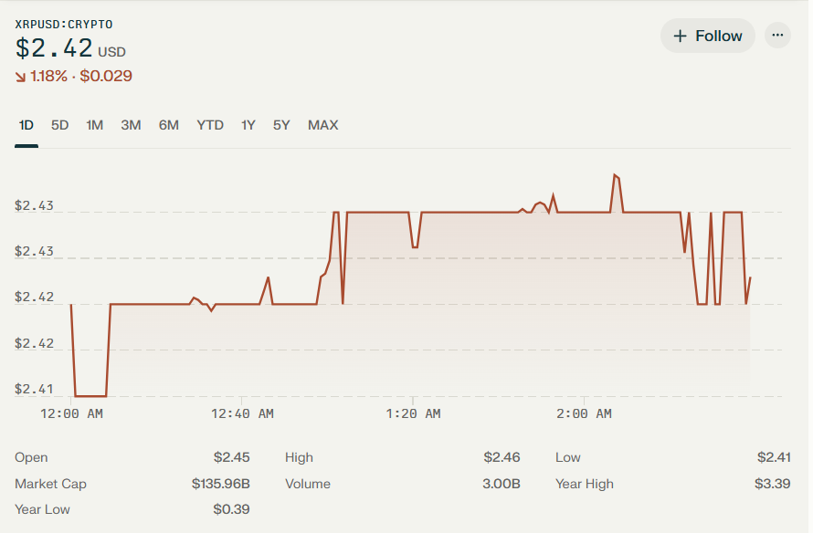A:是的,如果购买压力仍然强劲且市场情绪保持积极,XRP可能会在短期内突破2.48美元并测试2.50-2.52美元的区间。