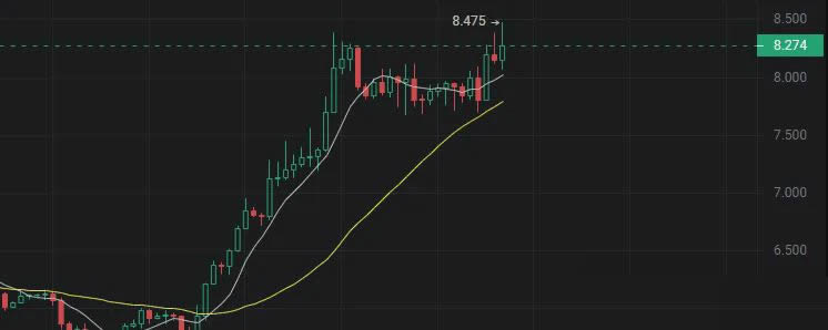 当然,在这个过程中,价格可能会稍微回调到 7.7 美元的支撑位,积蓄力量,为后续的上涨做准备。值得一提的是,虽然目前的平衡成交量(OBV)比较低,带来了一些看跌的情绪,但根据以往的经验,OBV 一旦回升,往往是价格反转的信号。所以,投资者们应该密切关注 OBV 的走势,抓住潜在的上涨机会。