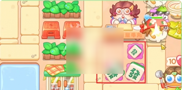 2、进入关卡后,首先在右下角的位置摆放一个麻将,并升级。