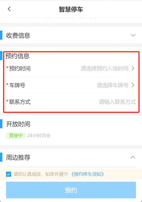预约停车:用户可预约1小时内的车位,预约停车全天开放,每日*多可预约2次。