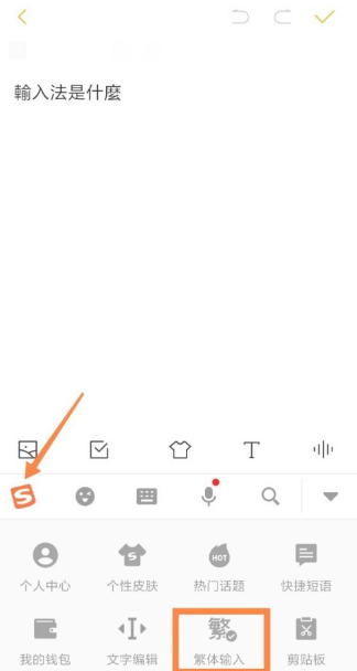 接着点击箭头处的“搜狗”图标,点击“繁体输入”即可关闭繁体功能。