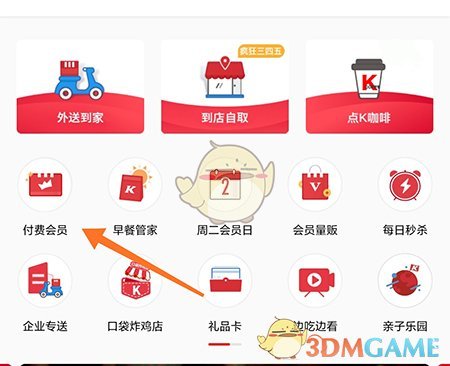 1、首先打开肯德基app,进入软件之后,通过首页找到付费会员选项;