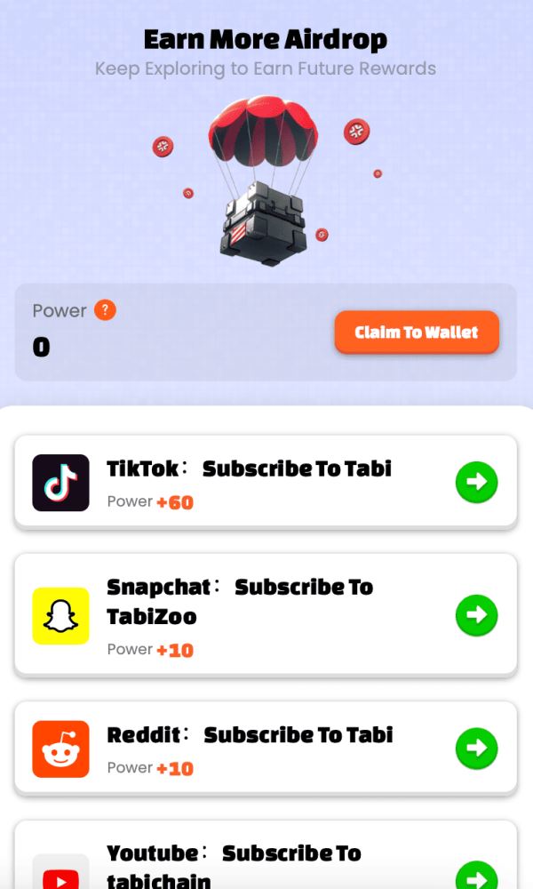 参与 Tabi (TABI) 空投并领取奖励是一个简单的过程,只需几个步骤: