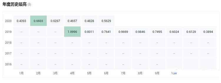GT 市值8048.16美元,占全球总市值的0.03%,流通量是1.58亿枚,24小时成交额307.42万美元,24小时成交量604.25万,历史最高价1.1879美元。