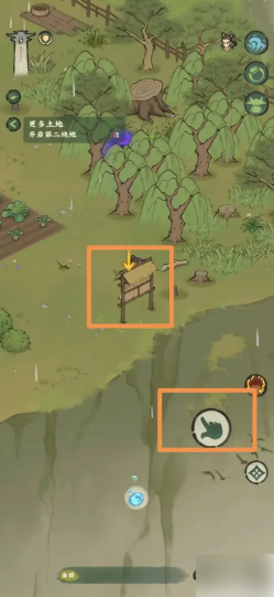 打开仙山小农游戏,走到公示栏,点击【小手图标】