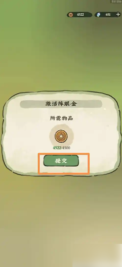 打开仙山小农游戏,走到公示栏,点击【小手图标】然后点击页面上霜爹的【圆形光晃财图标】,准备所需物品,点击【提交】4个圆形的物品提交