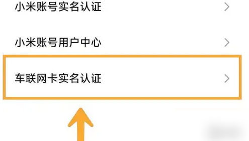 3、进入账户和安全页面后,点击【车联网卡实名认证】选项。