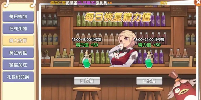 精力值是快速升级的关键,有跟没有升级完全是两个速度,25级解锁,上限100点,每天下午加晚上可免费领100点,使用精力药可恢复10点,每天最多使用30次,精力药可以在商城购买。