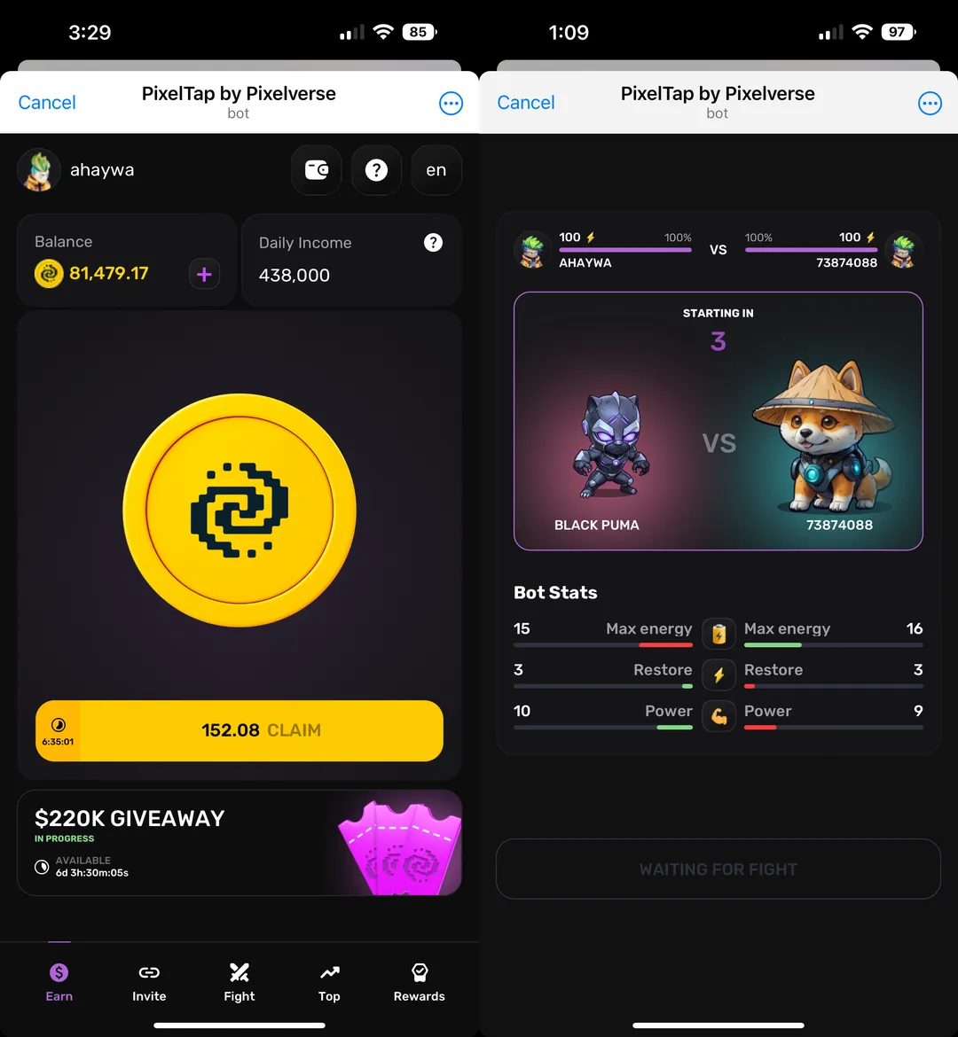 你需要疯狂地点击屏幕的各个部分来攻击对手的机器人,制作特殊攻击并试图保护自己。Pixelverse 正在计划发行代币,并且还将向顶级推荐人赠送价值不菲的稳定币。
