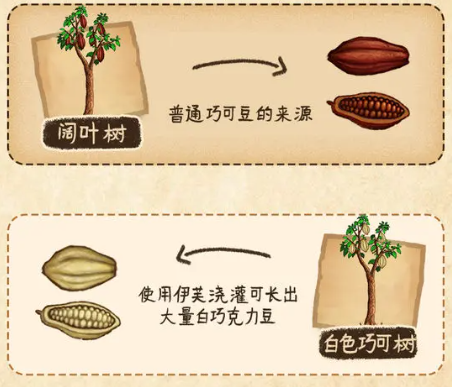 由白色巧可豆和伊芙果片制成的美味点心,受到人类和动物的喜爱,但可能引起后代的基因进化,比如如果斑羚吃了白伊芙果巧可,它下次生孩子时会生下白色斑羚。