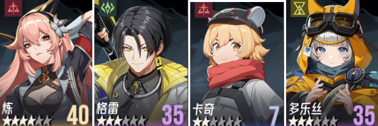 这里为大家带来的游戏各个单位都是不太一样的搭配,首先给大家做带来一个新手比较适合使用的低配版配队效果,这里的话,使用的是格雷+卡奇+多乐丝+炼这4个角色,目前这4个角色都是新手时期可以直接获取的,都是新手赠送可以拿到的角色,而且其中的炼和格雷就是主要的输出角色,这两个也是一多玩家在新手时期会优先选择使用的角色,卡奇的话,在游戏中本身具有拉掉的能力,所以在这里放在辅助位置上用。