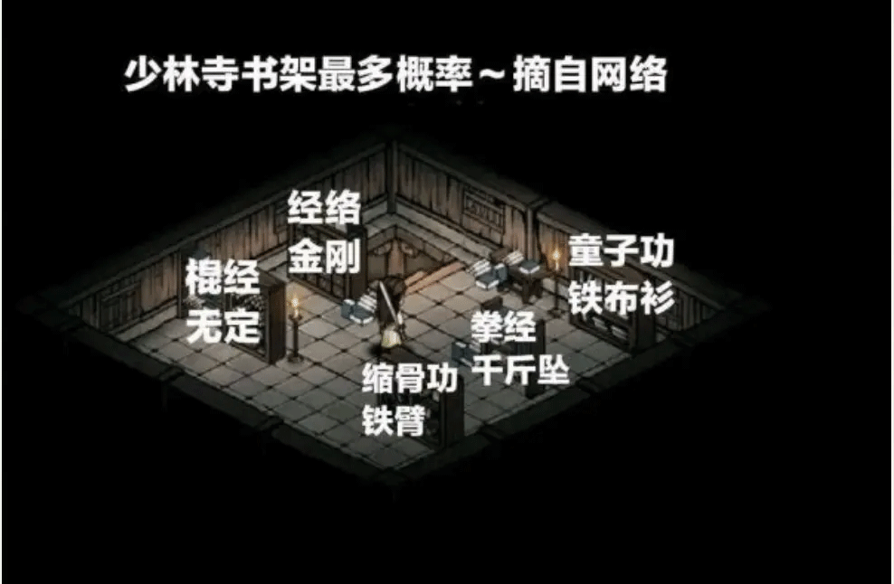40级以上,子时后嵩山(6.8)施展轻功来到(6.9),再跳到(6.10)选择钻入,或在藏经阁门口雁行功9二段跳上去,镇派轻功(九曜等)可以从(6.16)起跳直接跳到藏经阁顶。随便点击一个书架选择盗取秘籍,随机获得1秘籍残页或者无用残页,也可能显示你摸索了半天一无所获。