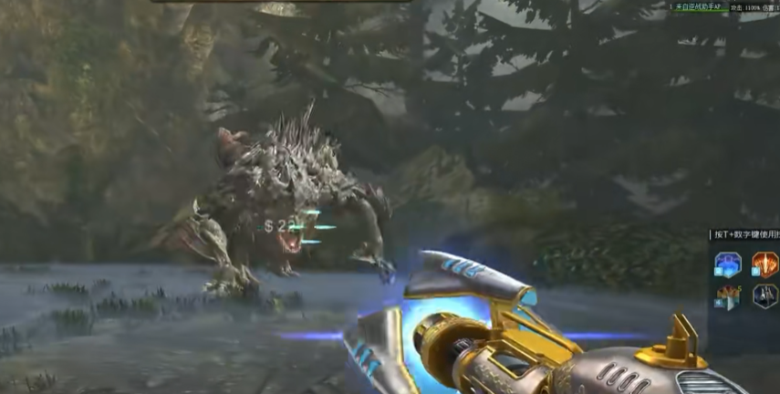 左键能够射出激光能量弹,点击右键武器就会化身成为烈性榴弹发射器,烈性榴弹发射器可以发射出伤害力极高的榴弹,有着很远的射程,适合在中远距离作战中使用,在战场中通过激光能量发射能迅速的把狂热给积攒起来,只要进入狂热状态就能进入到不消耗弹药又能高速射击的状态,这时直接将武器的烈性榴弹发射器给切换出来,玩家将会感受到更为爽快的射击体验,不管是在清小怪还是击杀最终boss,烈性榴弹发射器都有着强劲的击杀效果。