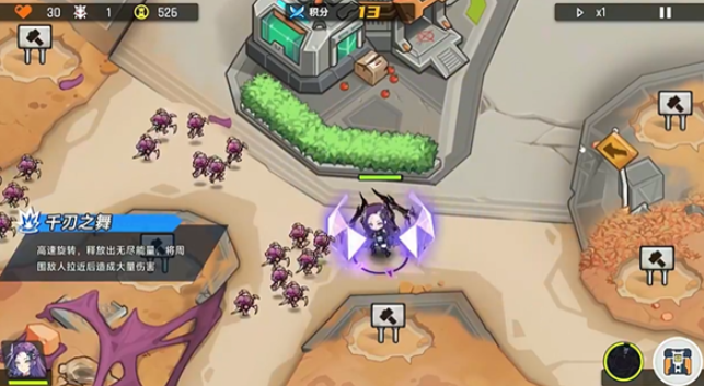 技能核心肯定是千刃之舞,这技能发动的时候特直观,艾薇拉原地转得飞快,周围像裹了层发光的刀刃,最神的是能把附近的怪都吸过来然后一顿乱砍,刚开始的时候总爱等怪堆得密密麻麻再放,后来发现不对,要是等怪都贴到防御塔了再放塔已经掉半血了,后来摸出规律得提前预判,比如看到小地图上一波怪刚刷新正往防线挪,这时候赶紧让艾薇拉站到怪必经的路上放技能,既能把散怪聚起来又能直接清掉大半,防御塔基本不用掉血。
