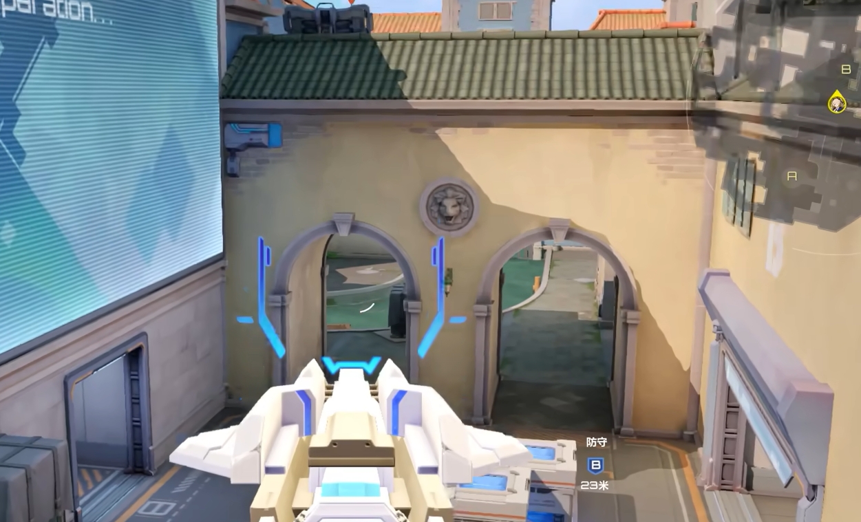 反观防守一方,在这张图需要注意的点位就比较多了。在回合开始时需安排人立刻来到中路,看是否有人从大酒店走并确定他们走哪个方向,好判断出攻方的动向,若有机会可收过路费。当中路没人时,可采用1中路2A区2B区的防守分配。其中A区可一人踩高点拿信息一人在低点准备战术道具反制,看到人后立刻丢道具拖时间等队友回防。B点也是一样,可在B侧房放一人,B区点位内放一人,由B侧房的人拿信息。中路的队友则可一直盯着大酒店里的动静,防止攻方在佯攻后采用集体出中的进攻套路。