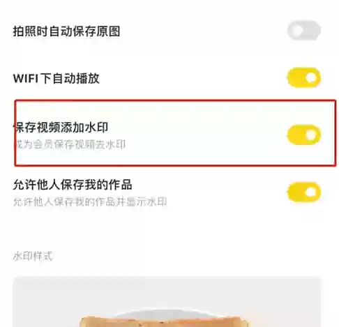 在通用设置中选择关闭显示水印即可去掉作品的水印了。