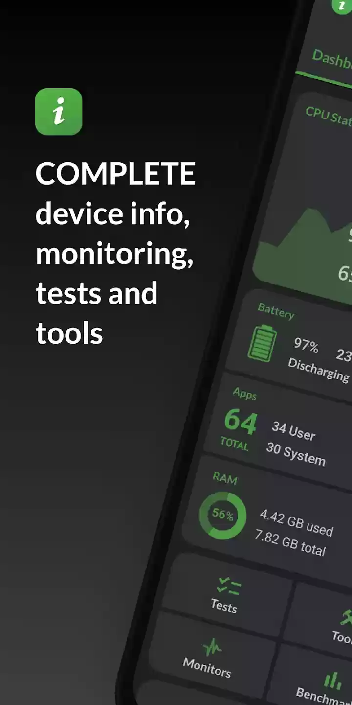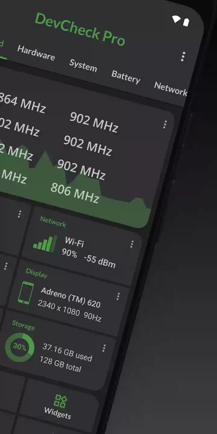 DevCheck是一款可以监测手机硬件的实用工具,提供了CPU频率监视、温度显示、正常运行时间、电池状态等多种功能,同时还可以查看您的Wi-Fi和移动网络的详细信息,获取实时传感器数据,了解你的手机的操作系统和架构。