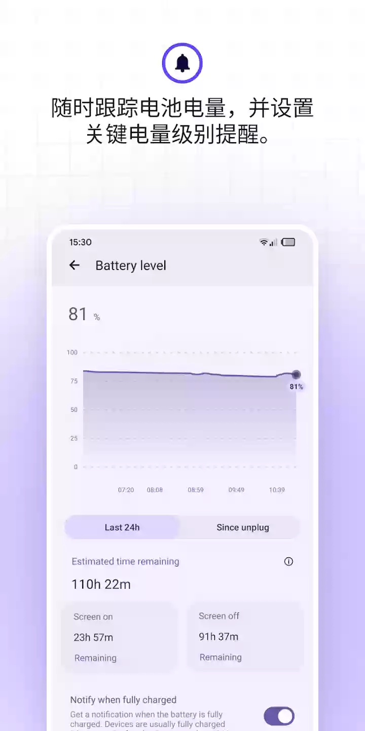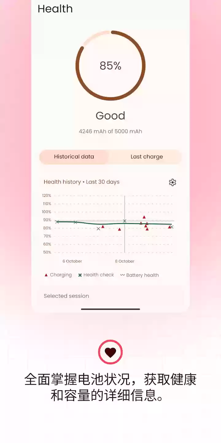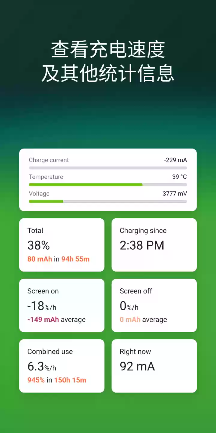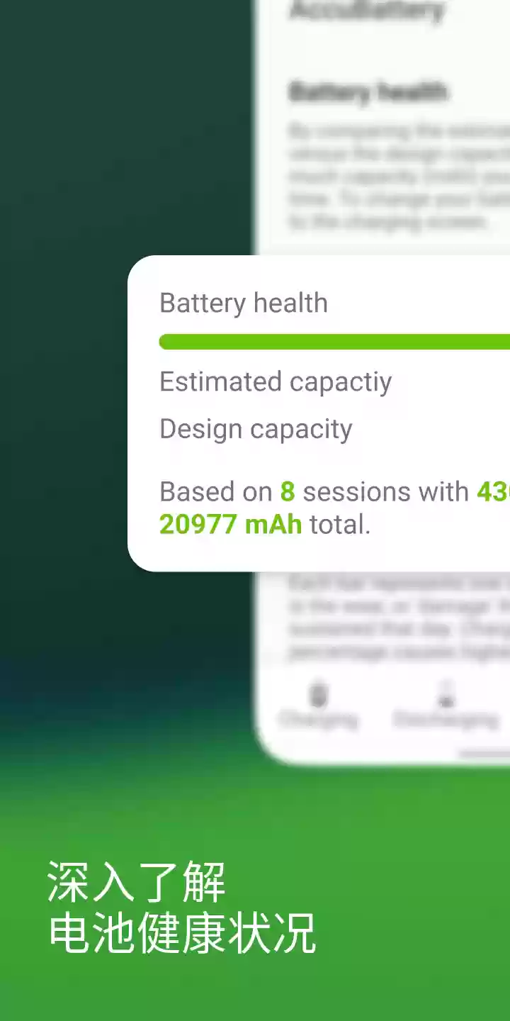 AccuBattery是运行于安卓手机的电池健康监测神器,提供了详细的电池使用统计数据,用户不仅能够通过它精确的测量电量,还可以估算电池损耗,预测电池的剩余使用时间,帮助你更好地规划日常使用,让自己的电池随时保持最佳状态,非常的实用省心。