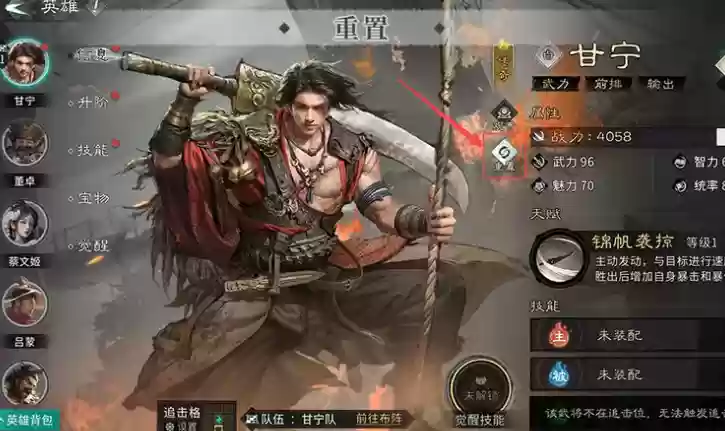 因为武将组队站位的时候上面有一个追击的效果,触发的追击越多,整体的输出伤害量就越大,在每次战斗结束之后,大家一定要注意到每个武将他身上的士气值,士气值是游戏当中一个主要的数值,可以通过实践或者是使用道具、包子来进行恢复,一般如果武将的士气值在60以下的话,那么此时队伍的战斗能力就会下降比较多,所以每次上阵大家要保证这个士气值最好是在60以上,后期如果是担心英雄培养的话,大家就可以放心培养,因为这里的话,英雄在技能培养上面都是可以进行重置的,而且重置是免费的,所以大家不用担心自己的资源。