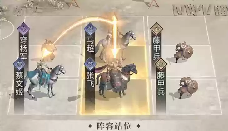 比如说如果大家用新手阵容的话,可以用蔡文姬、马超、张飞这样的搭配,这套阵容在新手快速成型的时候就可以用到,但是其中的操作简单稳定的情况下,站位也是要注意的,比如说站位上面,建议让马超踩中张飞和蔡文姬的追击格才可以形成这里的输出核心,因为这里马超作为主要核心的话,他的天赋技能可以提升自己的暴击率,同时还可以让追击格里面队友的暴击率带来足够的提升,在对敌方防御最低的单位造成输出了之后,他的爆发能力跟上,这样的追击效果才可以形成队伍的主要输出核心。