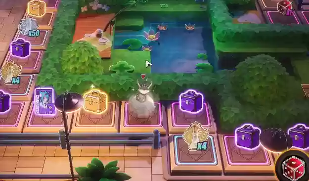 和其他抽卡不同的是,在这里面采用的是比较独特的集市棋盘玩法,常规的抽卡需要通过点击的方式进行抽卡操作,但在这个游戏里,需要通过投掷并且带领角色在棋盘上移动的方式,获取对应棋盘上的角色,每个角色的格子下都会隐藏着大量奖励,不知s级或者a级的角色能获取,很多武器,也有机会在这个过程中开出,即便得不到角色,也能得到一些特殊棋子,能让每一次抽卡变得更有趣味性。