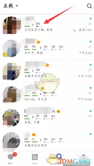 4、这样搜索出来的用户就都是正在线上的人,选择任意用户。