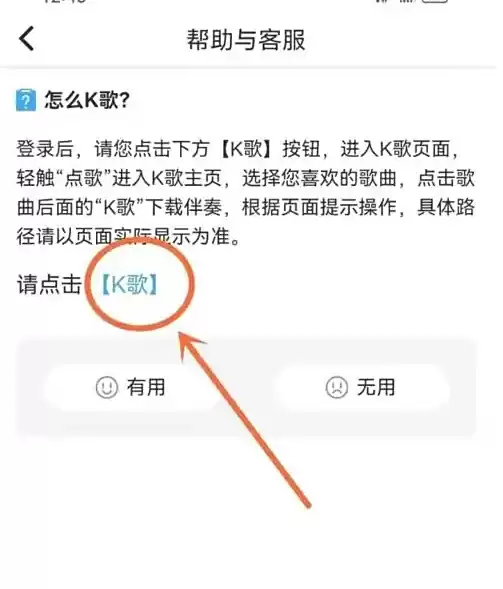 打开APP首页,点击“更多”图标。进入更多功能页,点击“帮助与客服”选项。进入帮助与客服页,点击“怎么k歌”问题。进入问题详情页,点击
